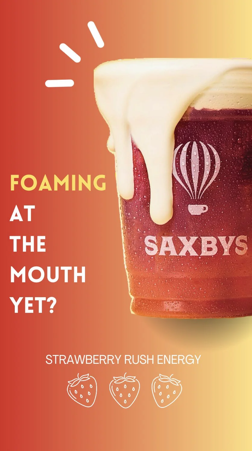 Managed a team of six Art Directors, Copywriters and and Strategists to complete an advertising campaign for University based cafe, Saxbys. Completed in the Spring of 2024, the team created multiple instagram posts and posters for around the university to be placed digitally.